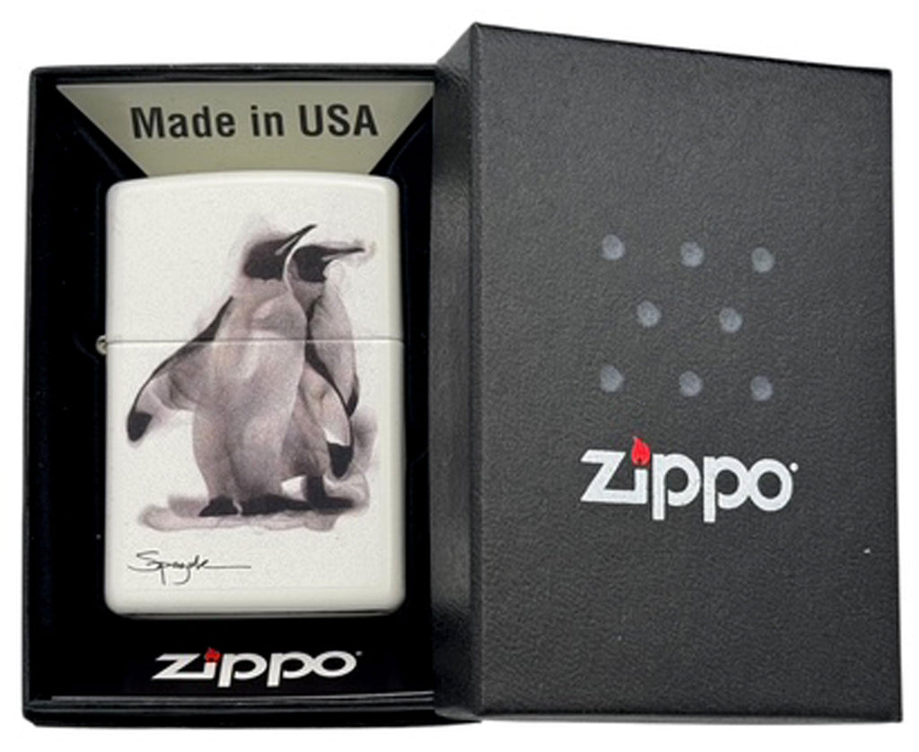 Custom Personalized Zippo Lighter Penguins by Steven Spazuk White Matt